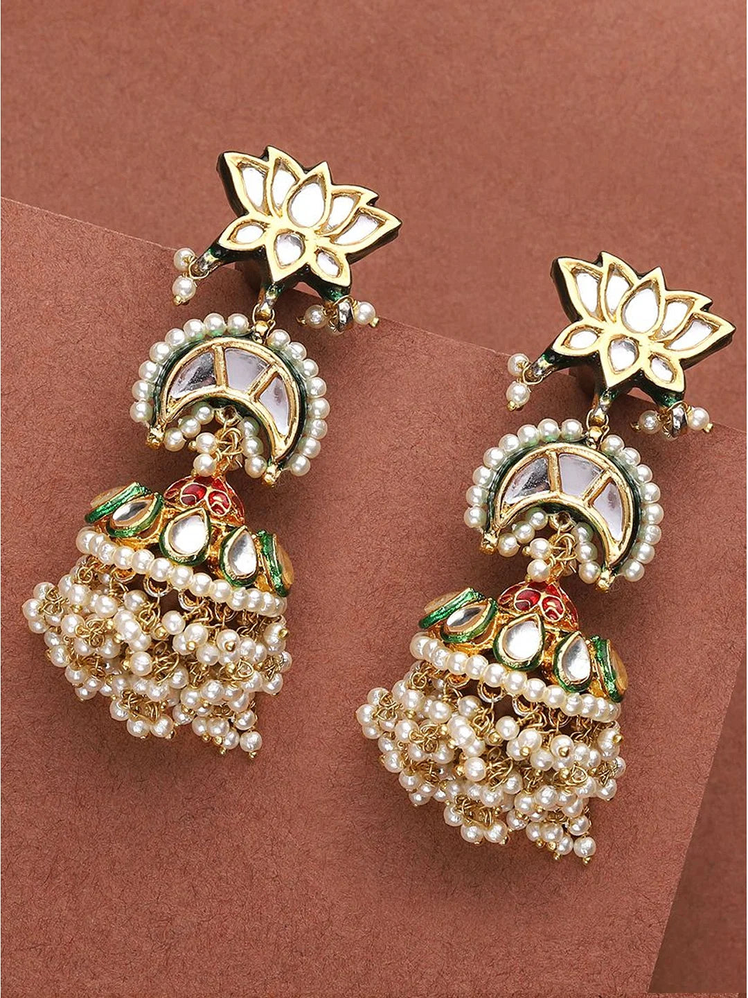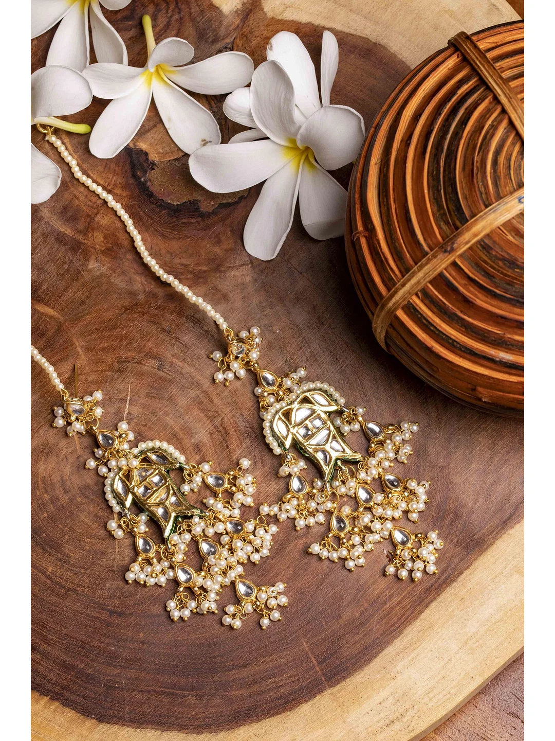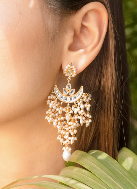 Gold & White Chand Biya Pearl Drop Dangler Earrings